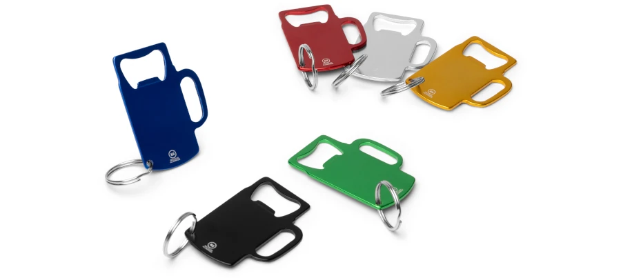 Breloki ARTOIS w kształcie kufla piwa są dostępne w 6 kolorach: czarnym, niebieskim, srebrnym, czerwonym, zielonym i żółtym.