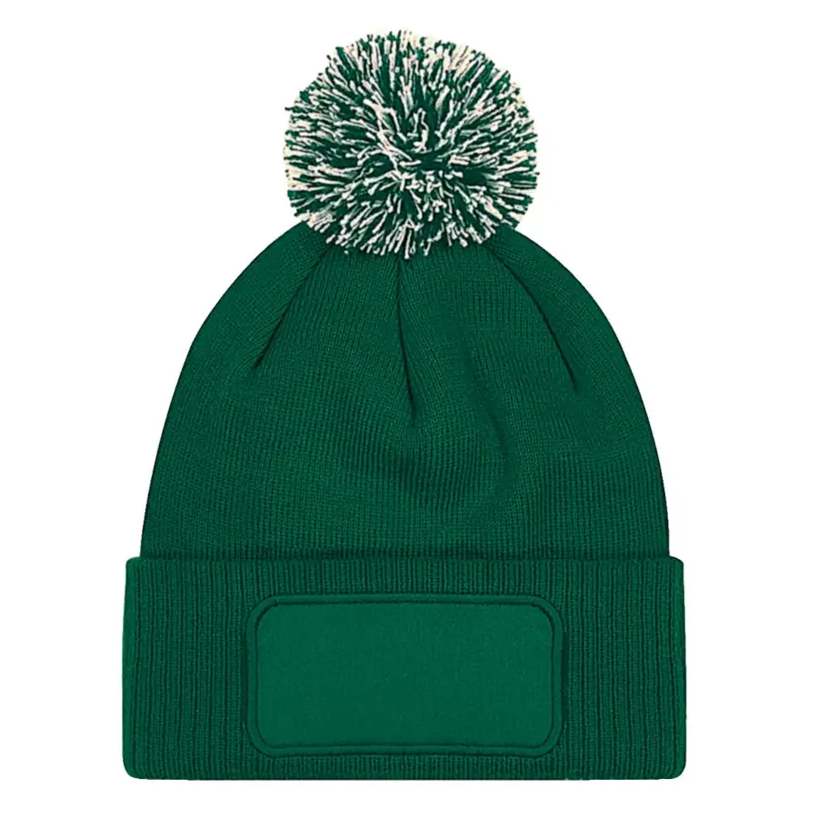 Czapka zimowa z pomponem wykonana z dwuwarstwowego, ciepłego i miękkiego poliakrylu. Na przedniej części znajduje się naszywka przeznaczona do nadruku logo o dużym rozmiarze – 10 x 5 cm. Idealne rozwiązanie dla personalizacji i znakowania firmowego na zimniejsze pory roku.